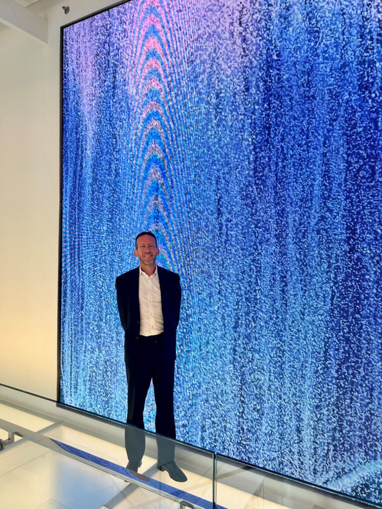 It was cited by Xylem, a major provider of water hardware and software solutions at an investor event it held earlier this year. In order to learn more, we recently met with the Chief Growth and Innovation Officer of the business at Xylem’s headquarters, located on Water Street in Washington DC, appropriately. Your author is pictured standing in front of the impressive water feature that dominates the atrium.