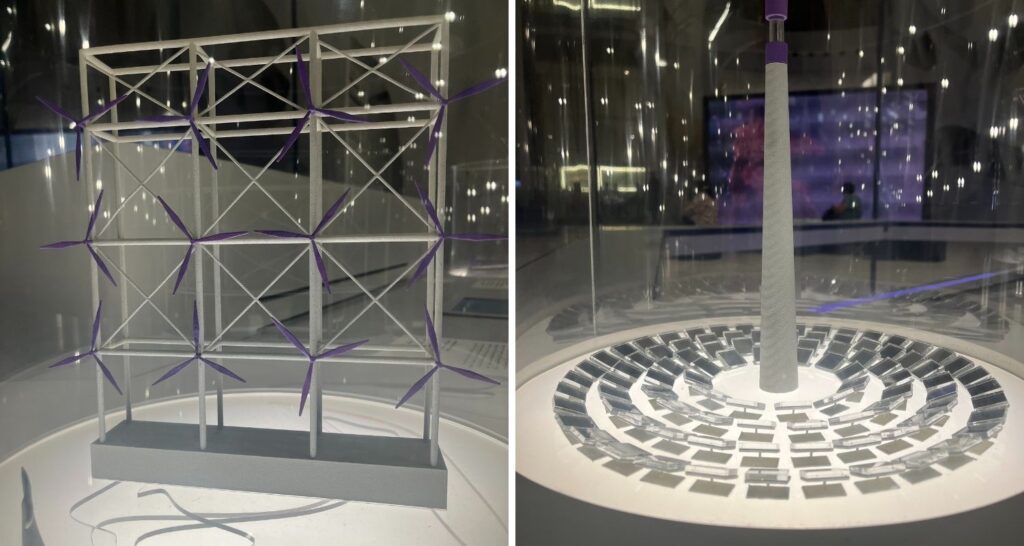 There’s no doubting the ambition of such a project. For those who think it may sound too far-fetched, the museum tour concludes on a floor called “Tomorrow Today.” Here, nearer-term technologies are displayed. On the topic of renewable energy, we were impressed with the “windcatcher.” Think of it as a floating structure containing more than one hundred wind turbines stacked vertically within a 300-metre-high framework. It could represent one future for offshore wind. Concentrated solar power towers were another interesting idea.