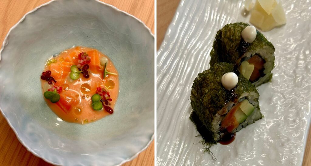 Even with these advantages, Wildtype recognises that “we have a lot to do” in terms of convincing consumers regarding the cellular narrative. There is a natural fear of the unknown. For your author, there were zero qualms about sampling the product. As the pictures attest, Wildtype’s salmon looks comparable to rival offerings. He sampled several dishes including a tiradito and a sushi roll (pictured left and right respectively). The former comprised apple wood smoked Wildtype salmon, blood orange tiger’s milk, sea-grapes, sweet potato puree, red onion relish. Meanwhile the latter roll was a composition of Wildtype salmon, avocado, gamtae, creamy yuzu miso, sweet soy glaze. Beyond presentation, the taste was not quite on a par with the real thing, but it does come close and will almost certainly improve. ‘Version two’ of the product, we were told, would contain more flavour and fibre.