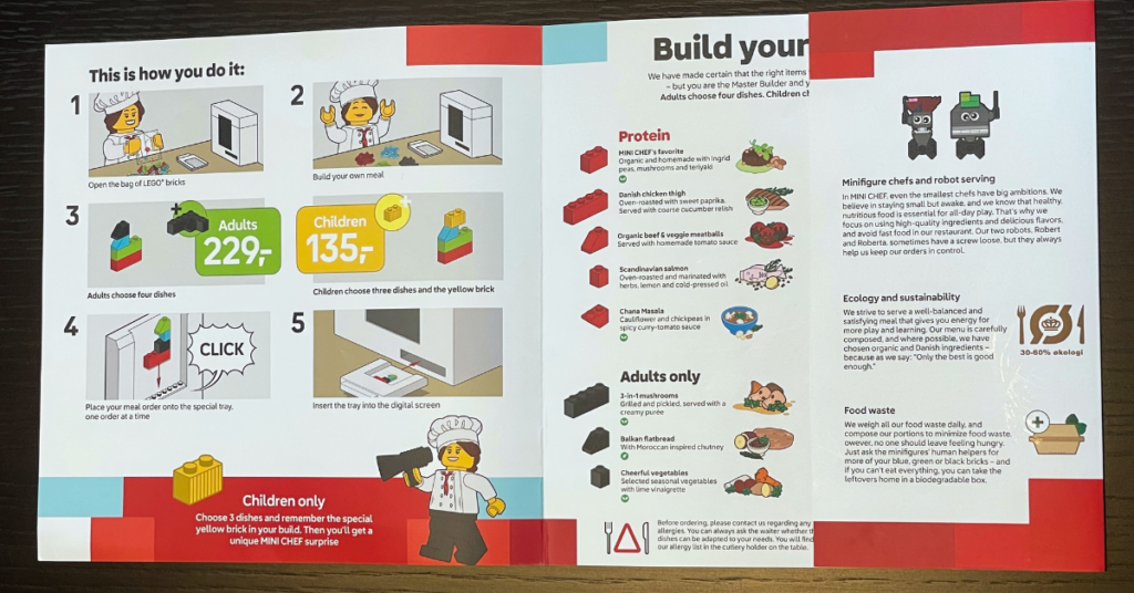 Beyond the inherent playfulness of the concept, there are some important learnings. In the country where Novo Nordisk is also headquartered, healthy eating matters. Obesity and diabetes are major problems that can be countered through appropriate dietary choices. The menu is designed to comprise healthy, local and often organic ingredients (your author chose Scandinavian salmon). Further, each product is weighed methodically, minimising waste. Packaging (such as the bento box in which each meal comes) is made from Lego bricks or is fully biodegradable. In the future expect more robots involved in both serving and preparing meals. Automatons can free human labour up for other, more purposeful tasks. And what about the food? The family consensus was very tasty, even if the portion sizes were rather small.